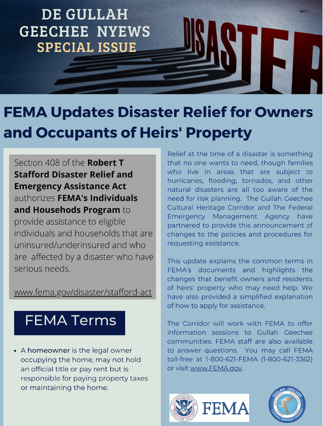 FEMA Updates Disaster Relief For Owners And Occupants Of Heirs’ Property Section 408 of the Robert T Stafford Disaster Relief and Emergency Assistance Act authorizes